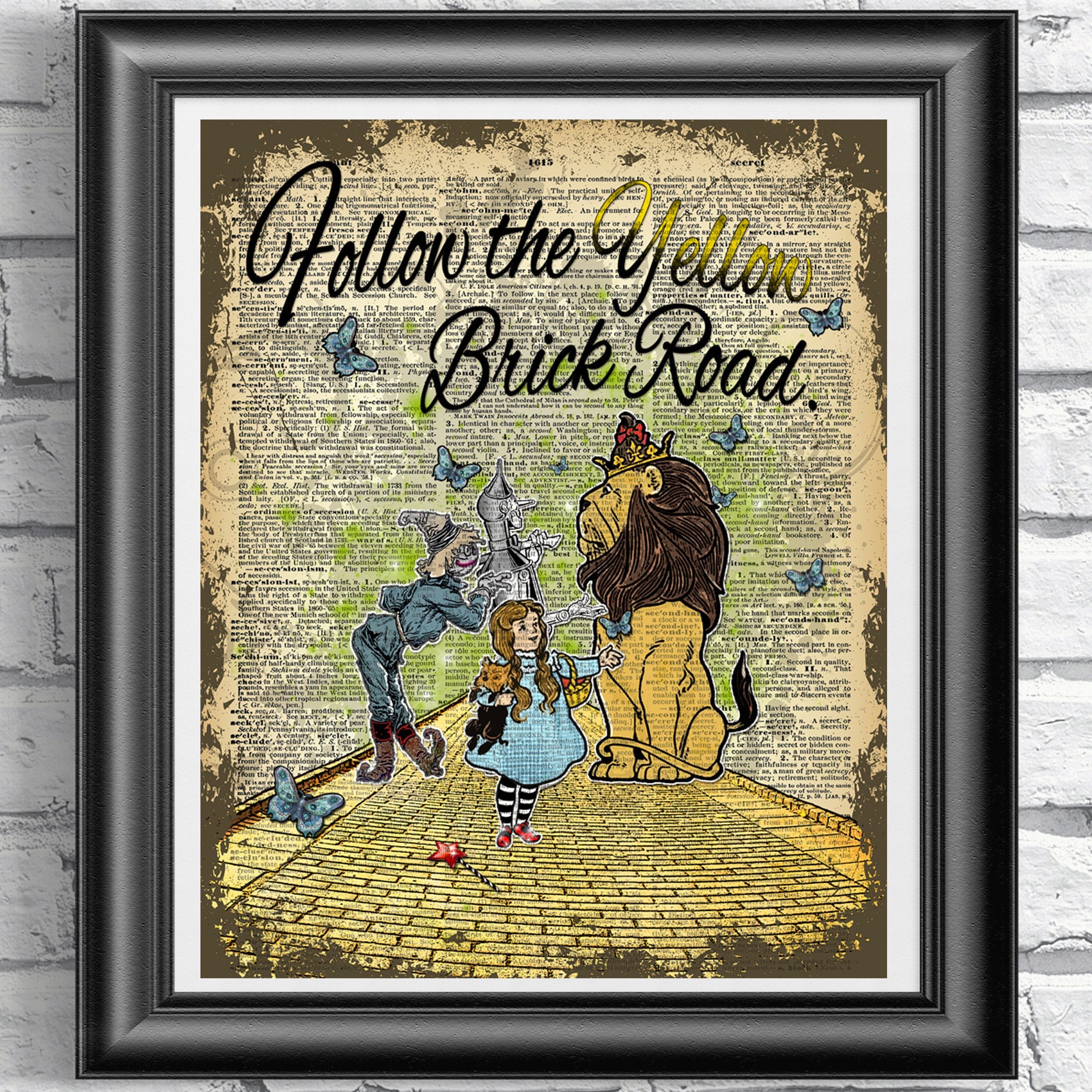 Wizard of Oz Print, Follow the Yellow Brick Road, Book Page Art
