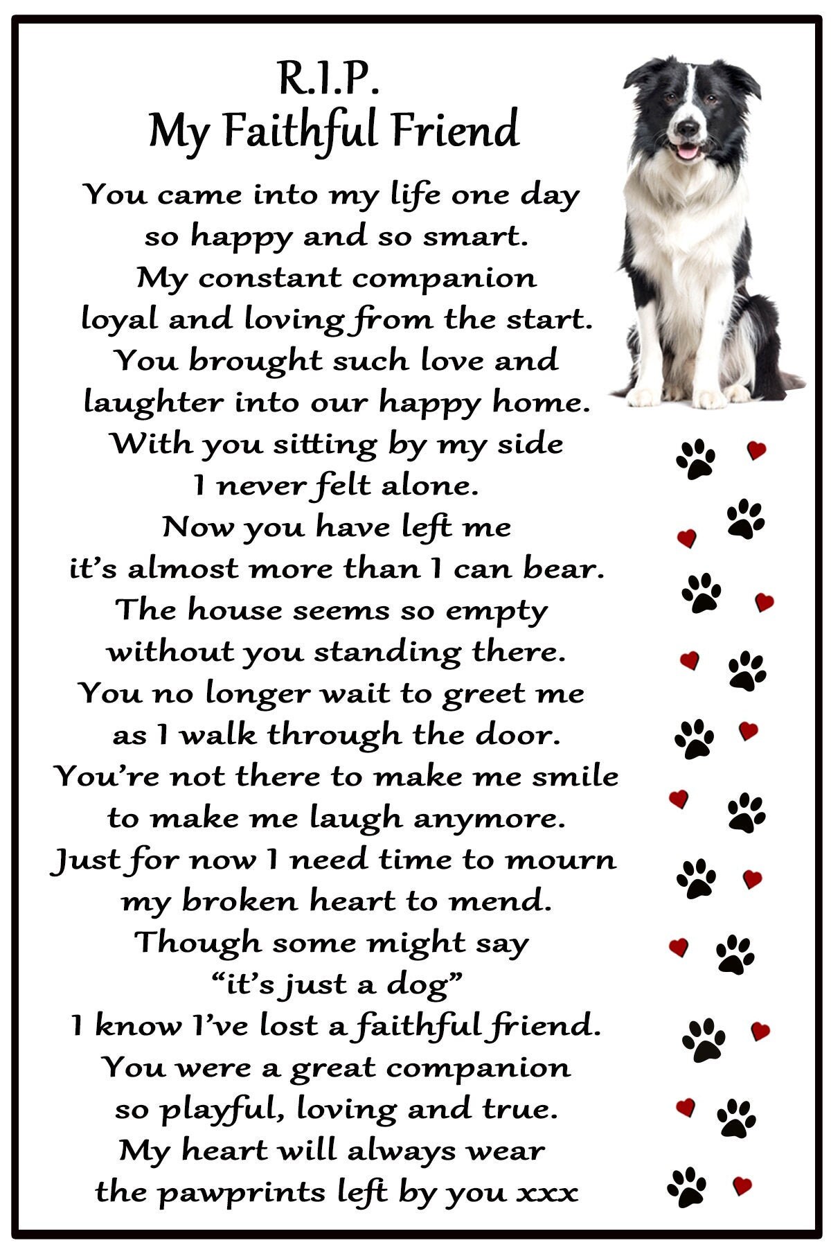 Border Collie RIP My Faithful Friend. Memorial, Dog Loss, Sympathy